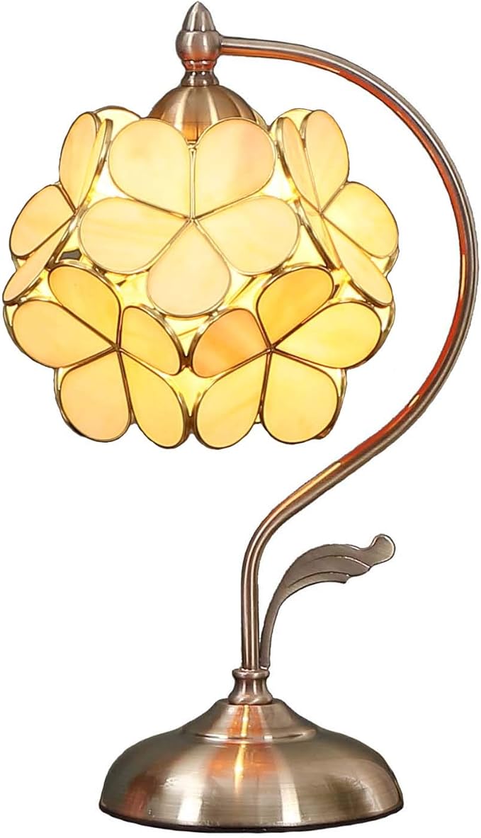Bieye L10754 Tiffany Style Stained Glass Flower Petal Table Lamp with Brass Base for Home Décor (Cream, 8" Cherry Blossom)