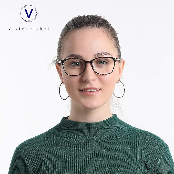 VisionGlobal Blue Light Blocking Glasses for Women, Anti Eyestrain, Computer Reading, TV Glasses, Stylish Square Frame, Anti Glare(Floral,+3.75 Magnification)