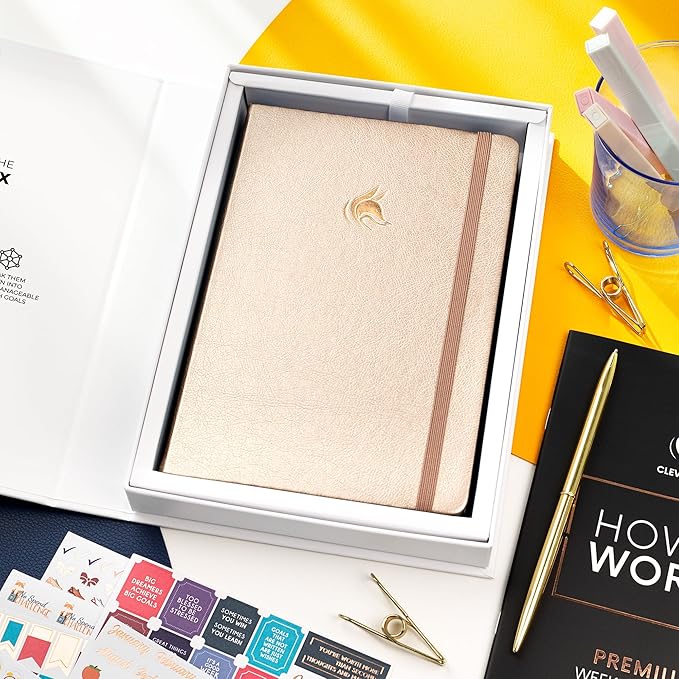 - ✓ GIFT BOX, STICKERS & USER GUIDE – This planner comes with a gift box, 6 sheets of stickers, and a user guide to ensure you make the most of using it. It has a vegan leather hardcover, thick 120gsm paper, a pen holder, and a pocket for loose notes.