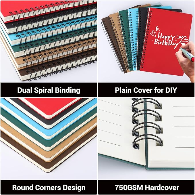 EUSOAR Spiral Journal Lined, A5 12 Pack 5.5" x 8.3" 120 Pages Lined Travel Writing Notebooks Journal, Memo Notepad Sketchbook, Students College Office Business Subject Diary Ruled Spiral Book Journal