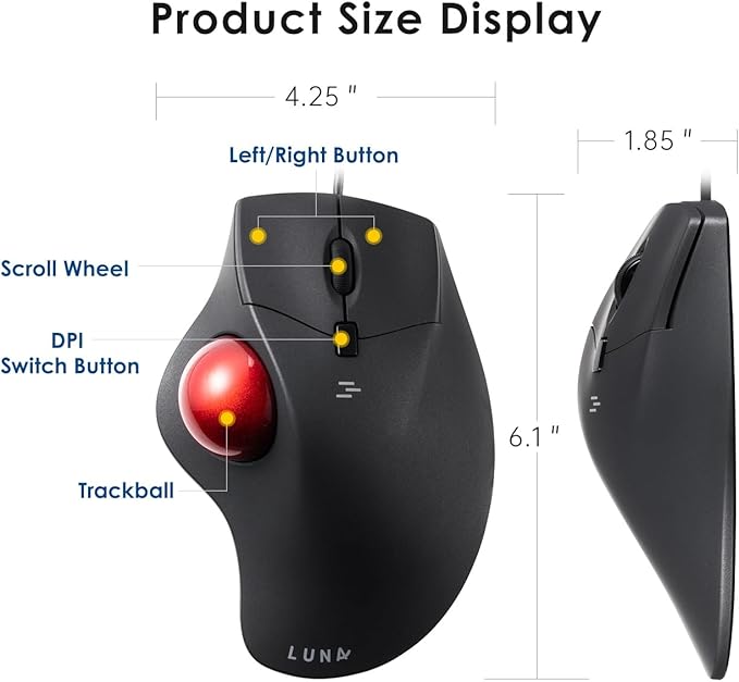 - 【ERGONOMIC TILT DESIGN】- Technical 19° tilt angle, right-hand design, easy to adapt for trackball beginners. Keep your wrist natural, and allow your arm muscles and shoulder to be relived for all-day work. Help to reduce muscle stress, wrist pain, RSI, and carpal tunnel syndrome. Perfect for drawing, typing, working, playing, etc.