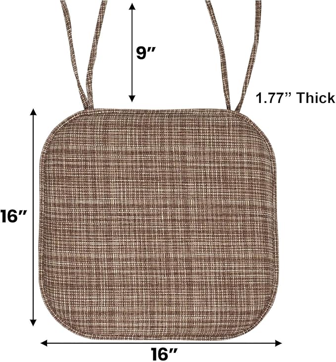 Sweet Home Collection Chair Cushion Memory Foam Pads with Ties Honeycomb Pattern Slip Non Skid Rubber Back Rounded Square 16" x 16" Seat Cover, 2 Pack, Aria Dark Brown 6 pack