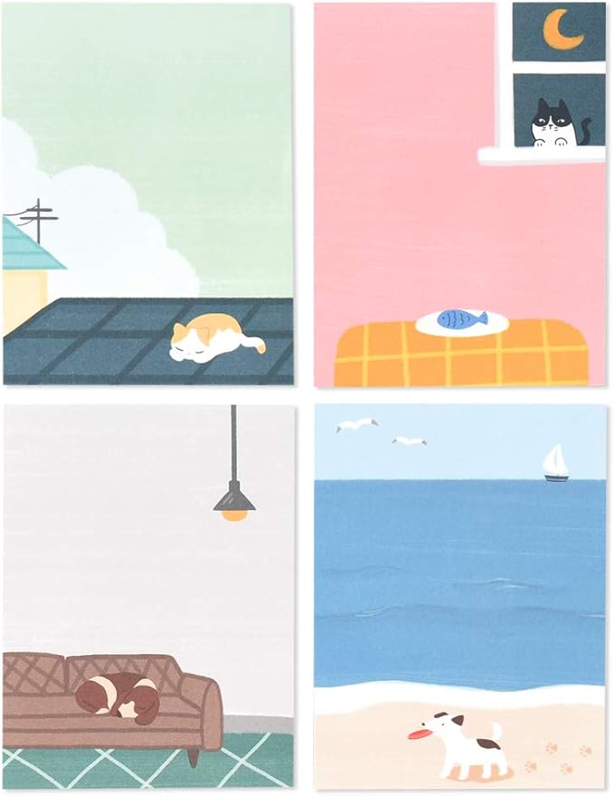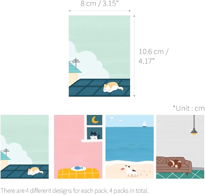 Monolike Memopad Playing Days design SET - 4 Packs, 4 Different Designs, 100 Sheets Per Pad, Total 400 Sheets, Note pads, Writing pads