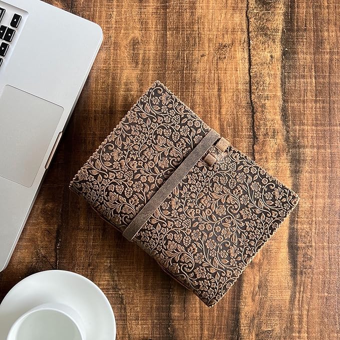 - Genuine Leather Journal: Luxurious full-grain leather cover, naturally tanned for an authentic feel. Embrace the craftsmanship with this durable, Floral embossed leather notebook, ideal for writers, travelers, and journal enthusiasts seeking a premium writing experience.
