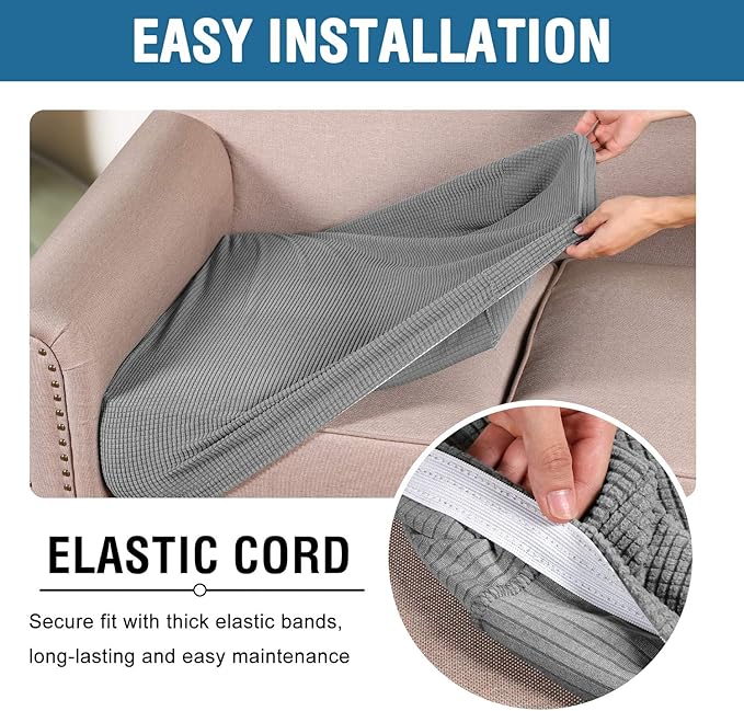 - NON SLIP: Effortless for installation (guide photos on selling page), sewn with thick elastic loops to cover the bottom edges. It is easy to install and take off, making your home more harmony, high recommended for both leather and cloth furniture