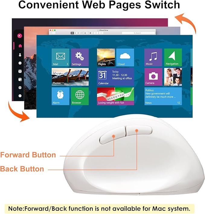 - EASIER WEB BROWSING - Advanced "Back" & "Forward" functionality buttons that located near the thumb area will provide convenience when web page browsing. *For Mac series, Forward / Backward buttons will not work.