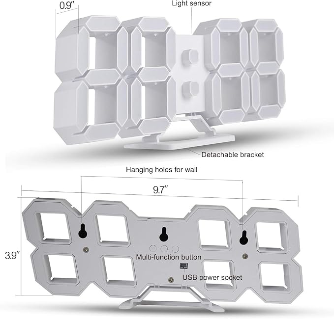 - Elegant Design: With awesome aesthetics, white led clock naturally assimilate itself into any white simple design wall or furniture, perfectly match, great addition to a dark night. A night light perfect for poor vision or having a difficult reading time people.