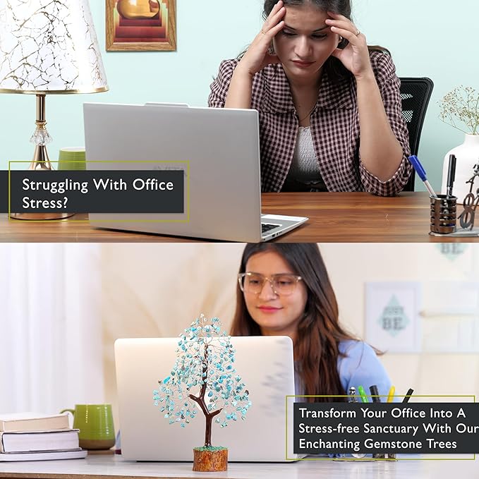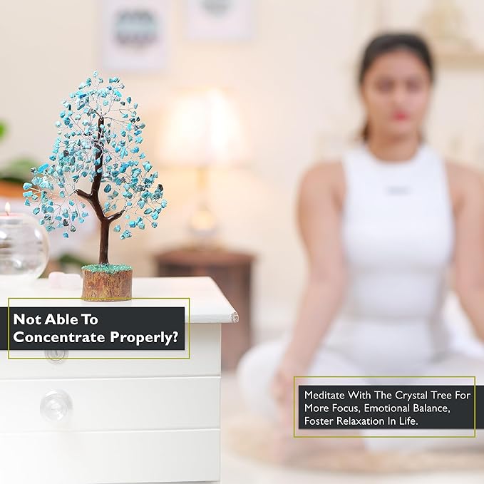FASHIONZAADI Turquoise Crystal Tree, Gemstone Tree Home and Office Decor, Good Luck Gifts, Crystals Decor, Housewarming Gifts