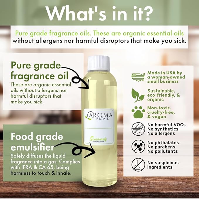 - PURE and NATURAL ingredients for use with any oil diffuser or scent machine