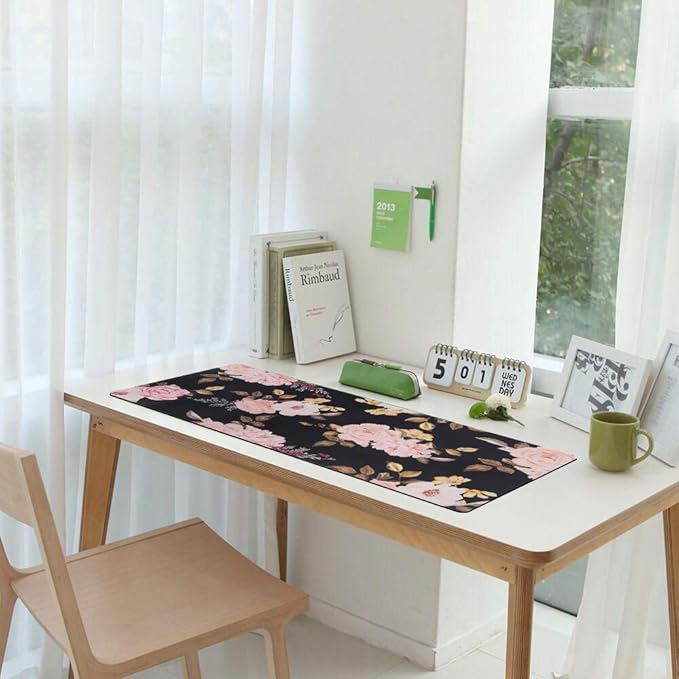 iCasso Extended Gaming Mouse Pad, Large Non-Slip Rubber Base Mousepad with Stitched Edges, Waterproof Keyboard Mouse Mat Desk Pad for Work, Game, Office, Home - Peony