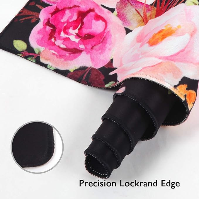 iCasso Extended Gaming Mouse Pad (35.4x15.7 in), Large Non-Slip Rubber Base Mousepad with Stitched Edges, Waterproof Keyboard Mouse Mat Desk Pad for Work, Game, Office, Home -Flower