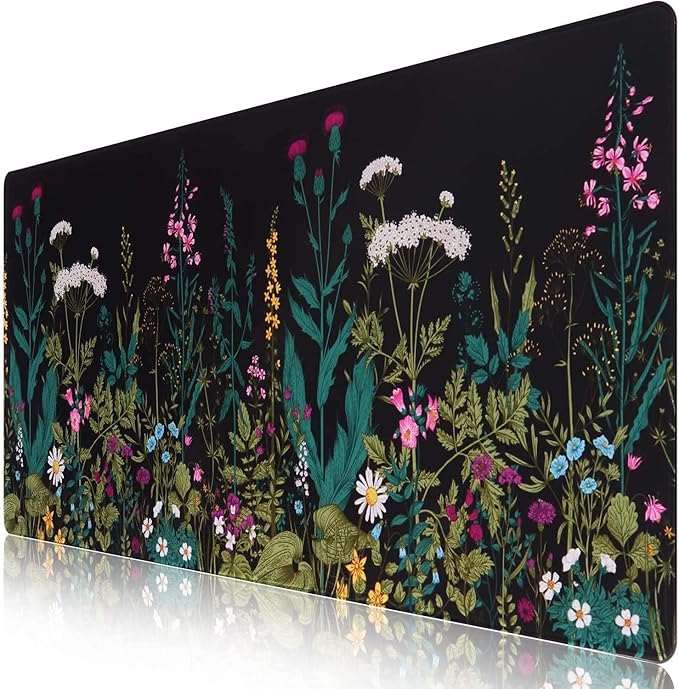 iCasso Desk Mat, Big Desk Pad, XXL Extended Gaming Mouse Pad, Large Mouse Pad for Desk Protector, Rubber Base Mousepad with Stitched Edges, Keyboard Mouse Mat for Work, Game, Office, Home - Weeds