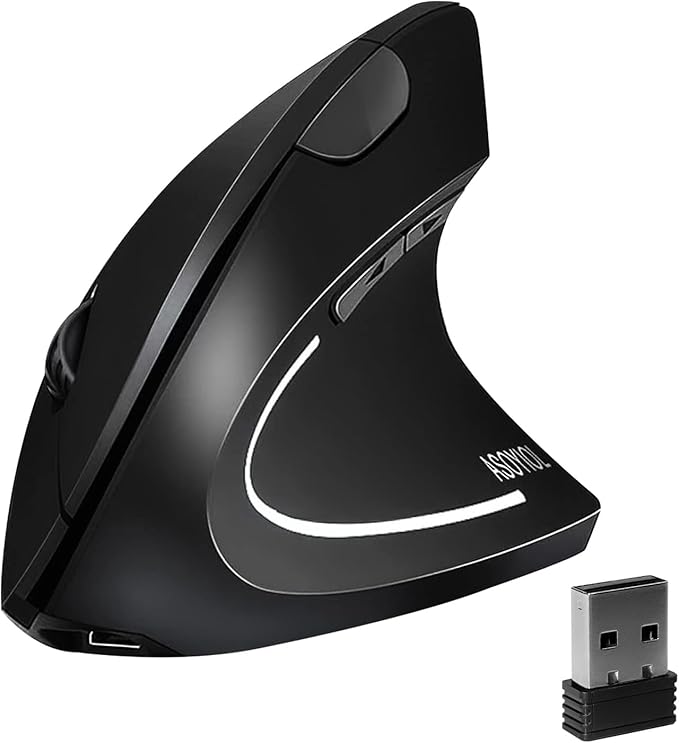 ASOYIOL Ergonomic Mouse Wireless,Vertical Mouse Ergo with USB Receiver 6 Buttons 800/1200/1600 Adjustable DPI Computer Mice for Laptop PC(Right Hand,Black)