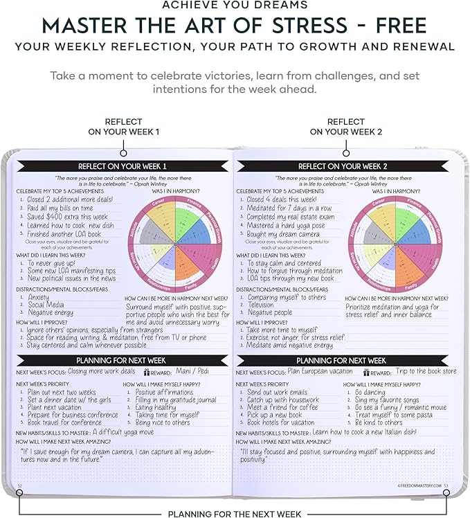 - GUIDED JOURNAL - Unlock your potential and master time management with five minute journal. This self-help journal is your path to setting and achieving big goals and desires. Inspired by the strategies favored by millionaires and billionaires worldwide, following the eight steps outlined in this undated daily planner can lead to remarkable results. Find your life purpose, live your passion, and discover your true desires.