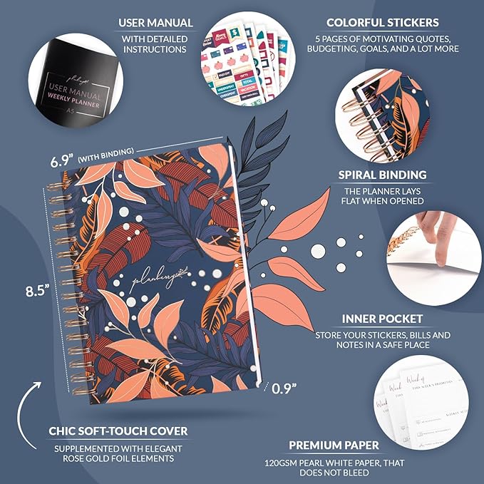 - UNDATED PAGES & OTHER FEATURES – This goal setting planner is undated and lasts 12 months so that you can start your weekly task planner anytime. The life planner measures 6.9 inches wide and 8.5 inches long and has A5-sized pages. Thanks to the double wire binding, pages turn easily and lie flat when the to do list planner is open, so you can write comfortably wherever you are.