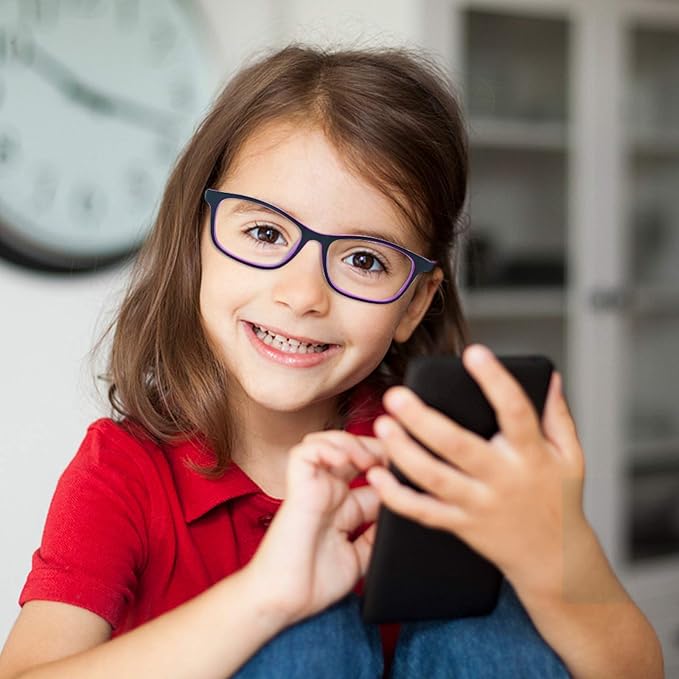 Outray 2 Pack Kids Anti Blue Light Glasses Classic Rectangle Eyewear Anti Harmful Blue Light/UV400 | Anti Glare (Purple+Red, 47)