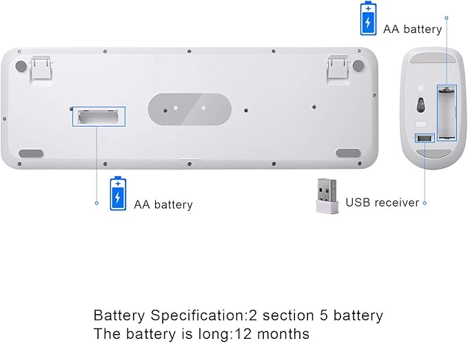 - 【Durability Battery Life】Both keyboard and mouse turn into Power-save mode automatically,click any key or button to wake-up within seconds.Each of them runs on one AAA battery (Not Included). Low battery indication shows in the top right corner, when the battery is dying,the keyboard's low battery indication light will remind you to replace the battery.