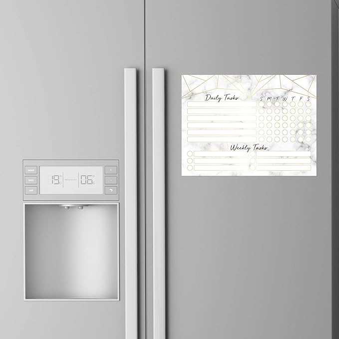 Dry Erase Whiteboard Task Planner | Removable and Restickable Adhesive Decal | Fine-Tip Magnetic Marker Included (9 x 12 inches, Marble)