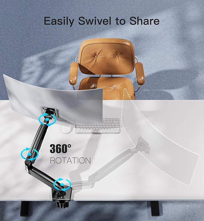 - Full Motion Adjustability:Smoothly tilt from -30° to +80° for seamless transitions between sitting and standing work positions. Swivel 180° to share screens in meetings, rotate 360° for portrait-mode coding, and extend 21.1" to reclaim desk space for notebooks or speakers.