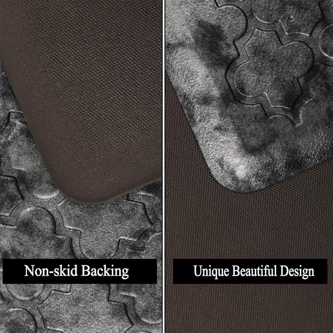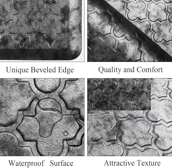 - Non Slip Kitchen Mat Runner: HEBE cushioned anti-fatigue comfort mat is designed with a unique beveled edge. The water-resistant top area has an attractive texture and the underside is super non-slip bottom, helpful to prevent tripping & slipping.