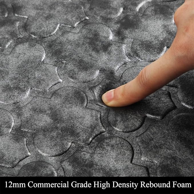- 1/2in Thick Cushioned Antifatigue Floor Mat: HEBE anti-fatigue kitchen floor mat provides thick, cushioned support to help improve circulation and posture alleviates stress, to ensure that you are able to stand comfortably while working in the kitchen or at any work station. Perfect for hair stylists,cooks and anyone who stands for long periods of time;