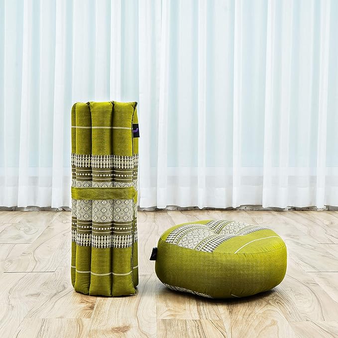 Leewadee Meditation Cushion Set – 1 Small Zafu Yoga Pillow and 1 Small Roll-Up Zabuton Mat Filled with Kapok