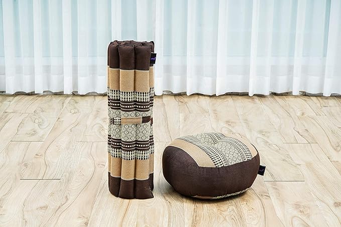 Leewadee Meditation Cushion Set – 1 Small Zafu Yoga Pillow and 1 Small Roll-Up Zabuton Mat Filled with Kapok