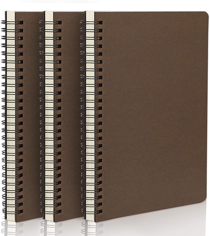 EUSOAR Spiral Ruled Notebook, A5 3packs 5.5"X8.3" 120 Pages Lined Travel Writing Notebooks Journal, Memo Notepad Sketchbook, Office Business Subject Diary Ruled Spiral Book Journal-Coffee Cover