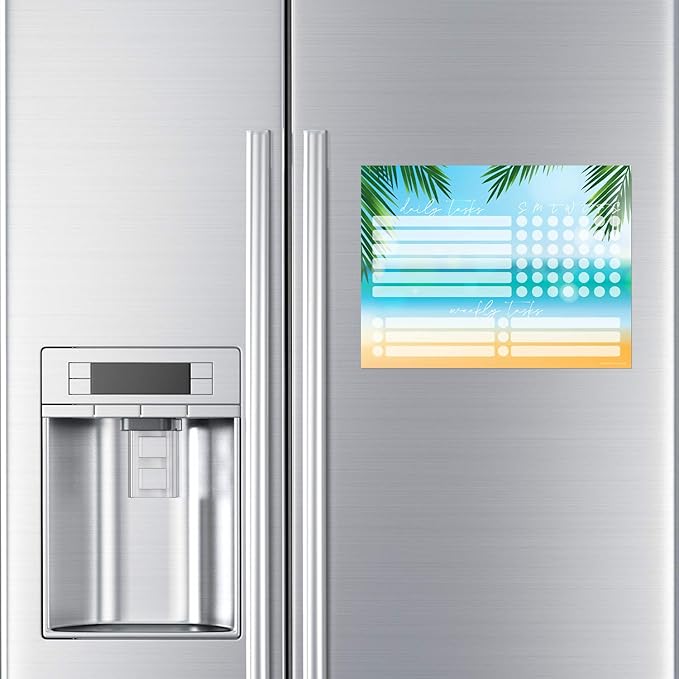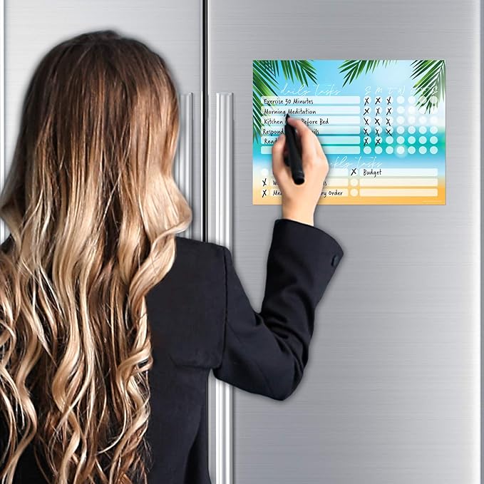 Dry Erase Whiteboard Task Planner | Removable and Restickable Adhesive Decal | Fine-Tip Magnetic Marker Included (9 x 12 inches, Beach)