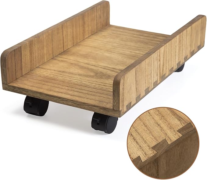 KIRIGEN Computer Tower Stand Cart - Heavy Duty Desktop Mobile Cart Holder for Computer Host with 4 Mute Caster Wheels - Wood Rolling ATX PC Case Rack, CPU Case Protecting Shelf (ZJJ Dark Brown)
