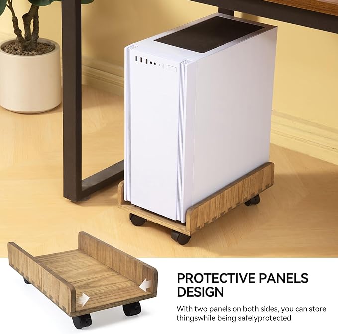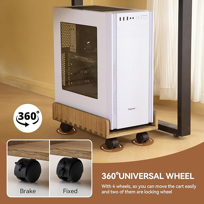 - [MOBILE & MUTE]: This computer tower holder is featured with four mute caster wheels,and two of them are locking wheel. This mobile CPU holder will come in handy when you're cleaning.