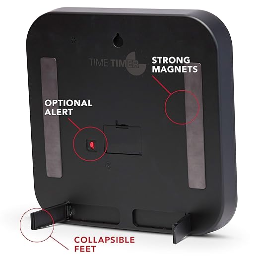 - PRODUCT DETAILS — The 12. inches x 1.65 inches x 12 inches visual timer requires 2 AA batteries (not included). The size of the countdown timer is ideal for medium and large groups. The magnetic clock timer can be used as a wall mount or stand with foldable feet on a kids' desk