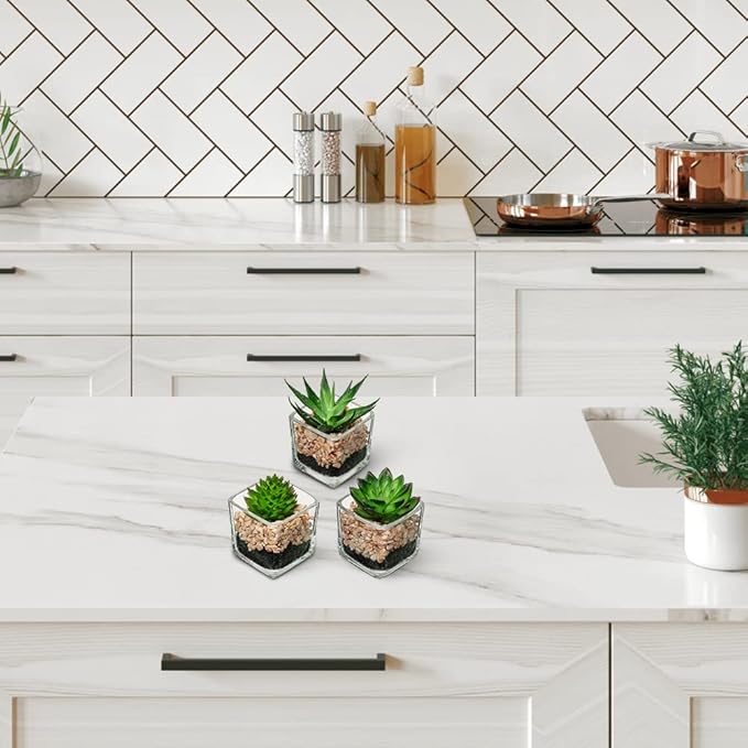 - Small Fake Succulents: The glass pot measures 1.96 x1.96 x 2 inches, while the total height (pot +plant) is 4.13 inches. A minimal set is great for including gift baskets or for decorating work desks with little space.