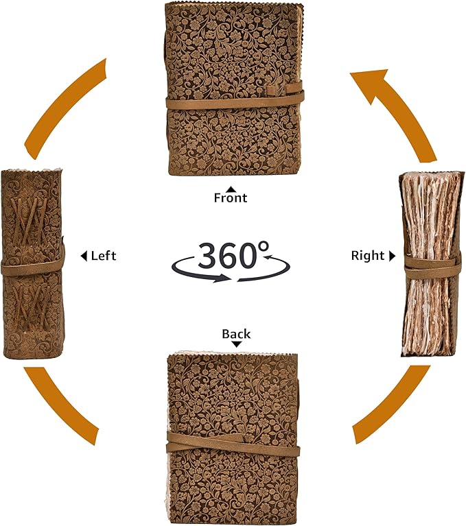 - Genuine Leather Journal: Luxurious full-grain leather cover, naturally tanned for an authentic feel. Embrace the craftsmanship with this durable, Floral embossed leather notebook, ideal for writers, travelers, and journal enthusiasts seeking a premium writing experience.