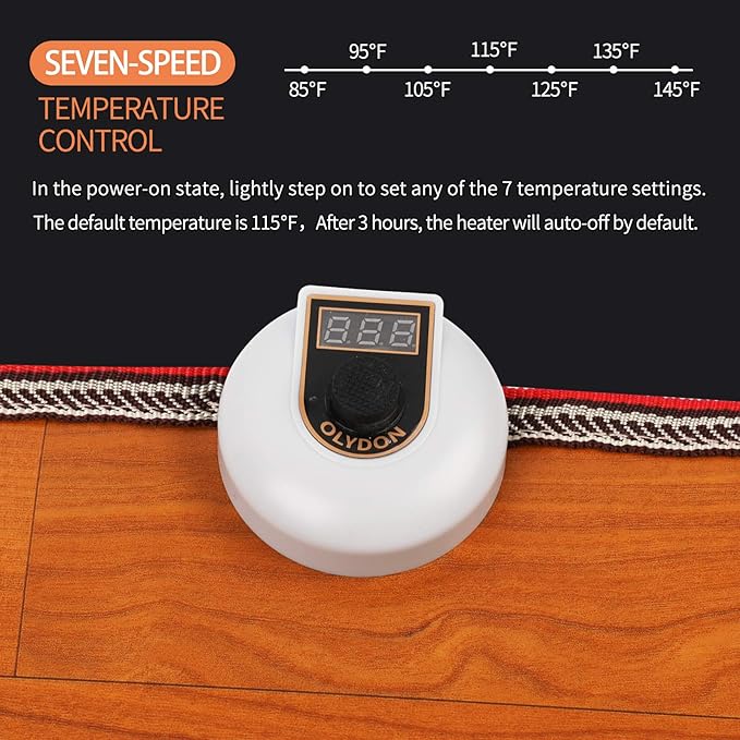 - EASY TO USE: Foot switch with temperature display. You don't need to bend over, just open it with your feet. Step and hold for more than 2 seconds to switch on or off. In the power-on state, lightly step on to set any of the 7 temperatures.