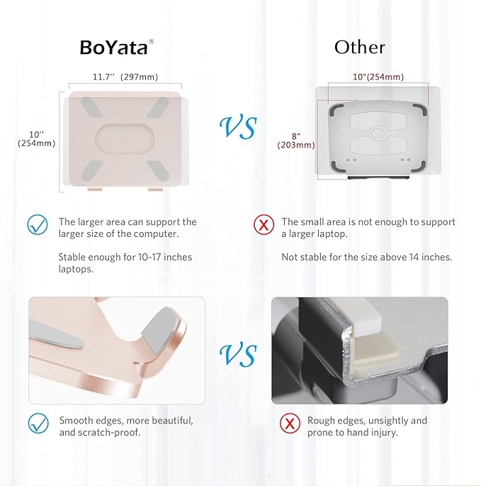 - COMPATIBILITY: The laptop stand fits a variety of laptops, compatible for MacBook/ Macbook Pro/ HP/ Lenovo laptops up to 17 inches, etc. Welcome back to the Amazon Store: BoYata Direct.