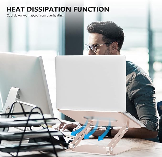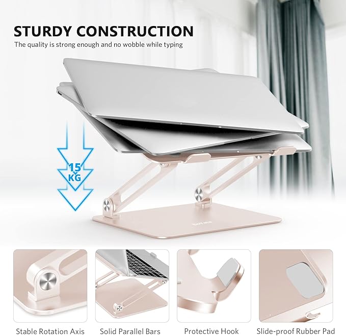 BoYata Laptop Stand, Adjustable Ergonomic Laptop Holder, Aluminium Alloy Notebook Stand Compatible for MacBook Pro/Air, Dell XPS, Lenovo, Samsung Laptops Up to 17 inches-Champagne Gold