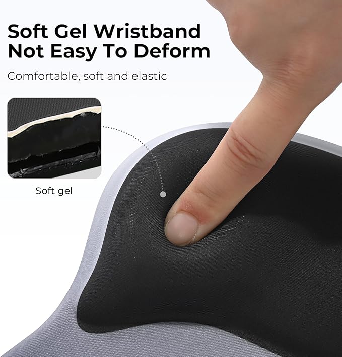 - Gel Wrist Support: The best and unique feature of this mouse pads is the ergonomic concave design in the gel wrist pad. It contours perfectly to the shape of your wrist, providing plenty of comfort and support to your wrist. You will see a noticeable difference immediately. Gel wristband offers a comfortable, soft, and elastic feel, ensuring a pleasant experience while providing optimal support for your wrist. Ensuring a more comfortable working or gaming session.