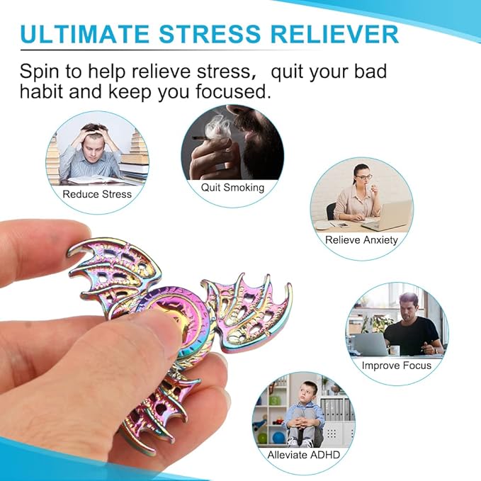 - Unleash your inner dragon with our captivating fidget spinner gift. Featuring a unique design inspired by dragon wings and eyes, this spinner is perfect for kids, adults, and men on Valentine's Day. Crafted with precision, it offers a smooth and satisfying spinning experience. Whether it's for relaxation or as a cool collectible, this dragon-themed fidget spinner is a must-have for anyone seeking a touch of mythical charm and fun.