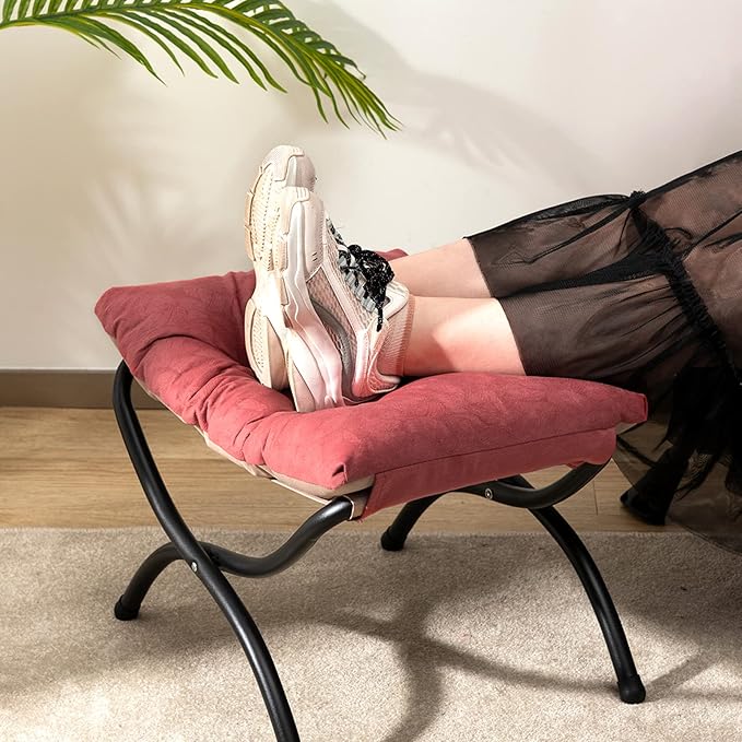 AbocoFur 15"(H) Folding Footrest Stool, Accent Padded Sofa Foot Stool for Lazy Chair, Upholstered Small Foldable Ottoman, Metal Frame Portable Foot Rest Ottoman for Living Room, Bedroom, Brick Red