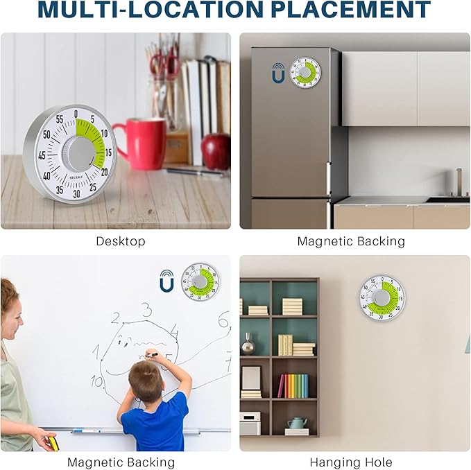 Secura 60-Minute Visual Timer 6-Inch Mechanical Countdown Timers for Teaching, Meeting, Cooking, Working - Timer for Kids with Magnetic Backing, Foldable Legs, Hanging Hole (Green)