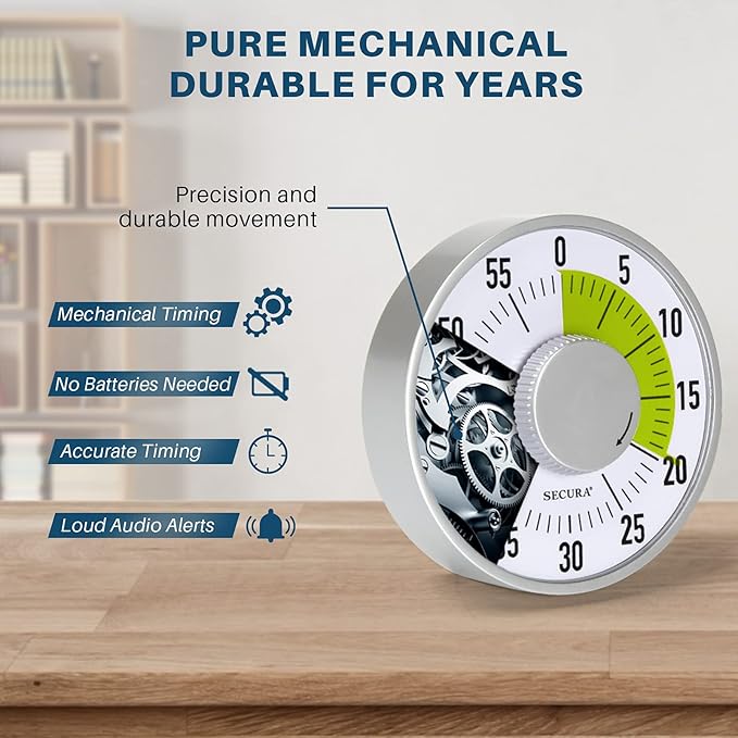 - NO BATTERIES REQUIRED - Completely mechanical countdown timer for school classroom, office working, kitchen cooking, gym body building, and more! High accurate mechanical timing. No batteries needed