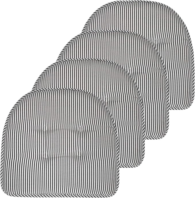 Sweet Home Collection Chair Cushion Memory Foam Pads Tufted Slip Non Skid Rubber Back U-Shaped 17" x 16" Seat Cover, Pinstripe Charcoal 4 Count