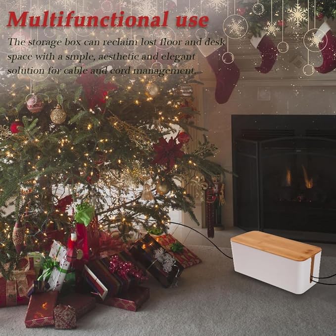 Cable Management Organizer Box, 2 Pack Large Storage Bamboo Lid Wires Concealer Holder for Office Desk, Home, Kitchen, TV, Computer, Cover Hide Tidy Surge Protector Power Strips & Cords (White)