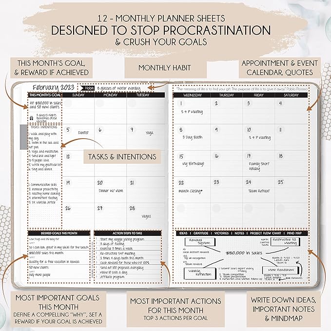 Life Mastery Planner - A 12 Month Journey to Crush Your Goals, Increase Productivity, Passion, Success & Happiness - Weekly & Monthly Life Planner, Habit-Tracker, Gratitude Journal & Organizer