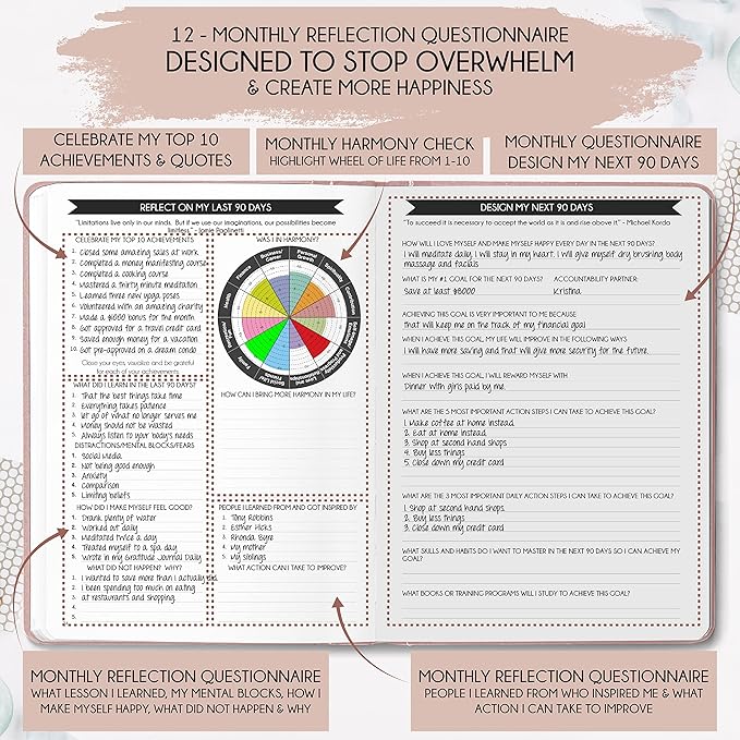 - THIS IS A DELUXE UNDATED HARMONY PLANNER - Showing you how to become the best possible version of yourself on a mental, physical & interpersonal level. It’s the only planner of its kind, and its design is based on leading scientific studies that are proven to increase productivity, harmony & happiness! It has a vision board to stay focused, morning & evening routines, mind maps, reflection pages, 90-day habit tracker, back pocket, harmony guide and so much more than any other planner listed!