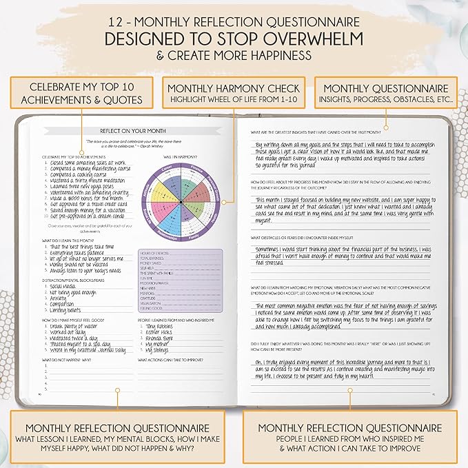 - REDUCE OVERWHELM, STRESS AND FIX PROCRASTINATION - Follow a unique 8 step system that will help you bring back harmony, clarity, and peace in your life while achieving your goals. This planner is perfect for birthday gift, mother's day, anniversary gifts, and christmas gifts.