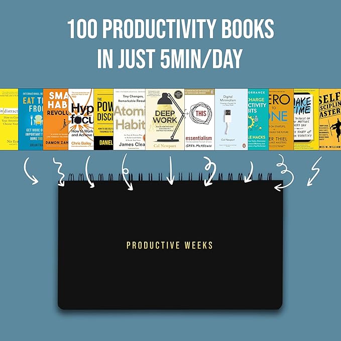 - π 100 BOOKS IN ONE PLANNER β distilled productivity hacks power goal setting, weekly priorities, habit tracking & daily task tracking, weekend agenda, dotted notes.