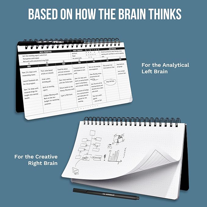 - ποΈ UNDATED DESK PLANNER 2025-READY β Begin 2025, 2026, whenever; start any month without wasting pages; 55 acid-free sheets, 120 gsm thick paper + rugged 360Β° spiral bound lay flat for smooth writing.