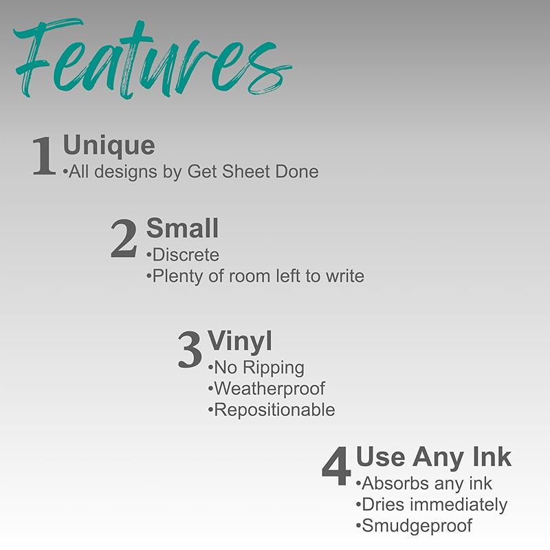 - [Material] - High Density Ink on Matte Vinyl Sticker Paper - Rip Proof, Weather Proof, Re-positionable.